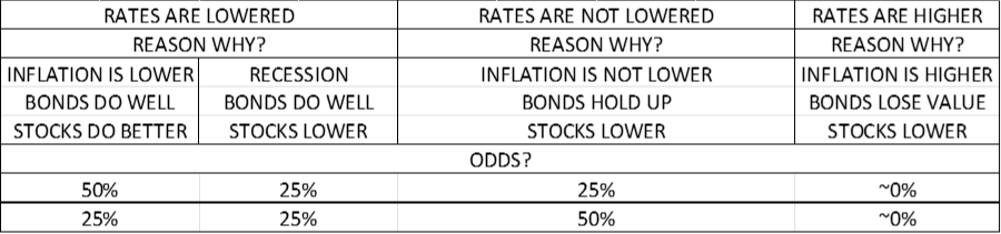 Below is a table from my January letter. It outlines how stocks and bonds might react to changes in interest rates.